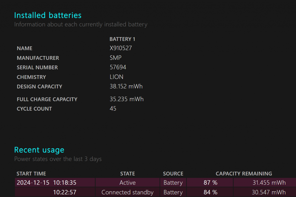 In der Kommandozeile einfach „powercfg /batteryreport“ eingeben und dann hat man in seinen Benutzerordner schon die Auswertung als HTML-Datei!